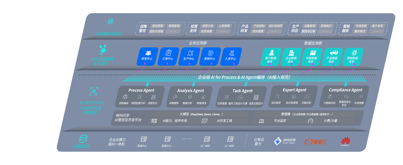 非凡国际问学智车解决方案是一套基于AI技术的汽车行业智能化系统,,覆盖从底层算力到顶层AI应用的全栈方案。。。方案由算力层、、模型层和应用层组成:算力层,,,,方案支持多种一体机配置,,,具备云端灵活部署、、、多云适配以及动态优化计算资源的能力;模型层,,,非凡国际问学平台版提供了企业级AI应用一站式构建与管理平台,,,,支持基于后训练强化技术的汽车企业专属模型的训练、、、、评测和运营;应用层,,,,非凡国际问学DeepSeek版提供包括超级员工、、、、智能招采、、、、智能营销、、、、智能客服、、AI for BI等一系列解决方案,,,可助力汽车行业实现数字化转型,,,让管理更智能、、响应更敏捷。。。